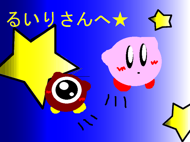 え~前に描いた絵をワドルドォに色をつけました~★