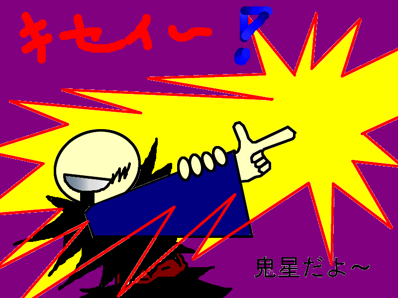 う~ん・・・・鬼星がキックしている絵を描いてみたのですが・・・。